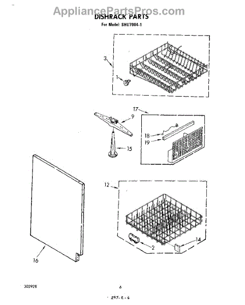 Parts for Whirlpool SHU70041: 04 - Dishrack Parts