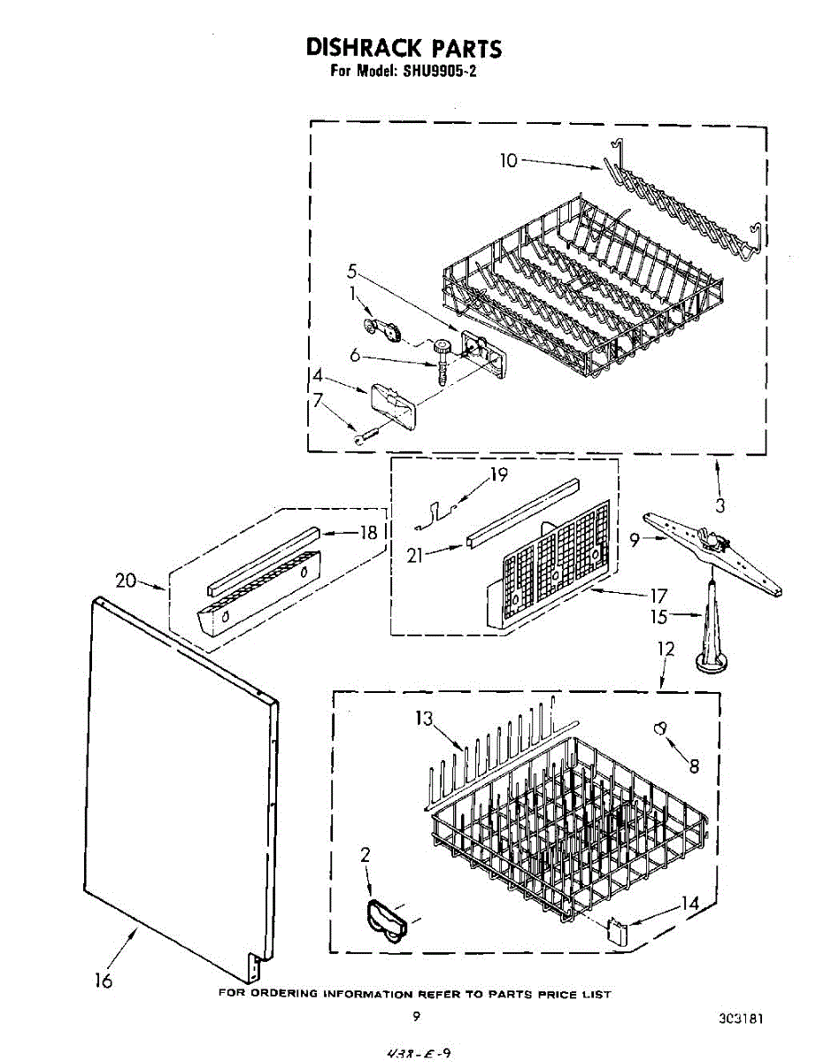 Parts for Whirlpool SHU99052: 06 - Dishrack Parts