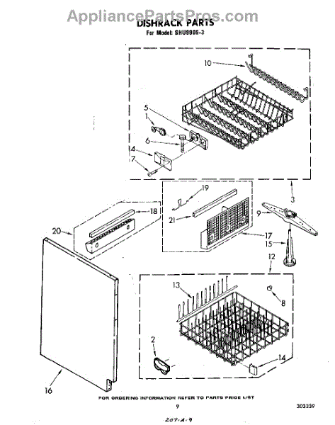 Parts for Whirlpool SHU99053: 06 - Dishrack Parts