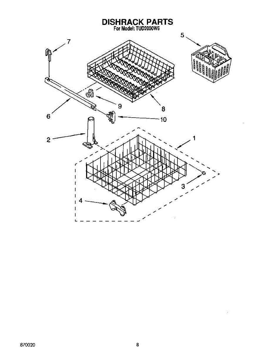 Parts for Whirlpool TUD2000W6: 07 - Dishrack Parts