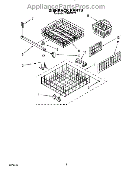 This dishrack replaces a damaged, rusted, or warped rack to restore smooth loading and secure support for dishes. A solid rack keeps items upright for better spray coverage, cleaner results, and helps prevent rust transfer and chipping.