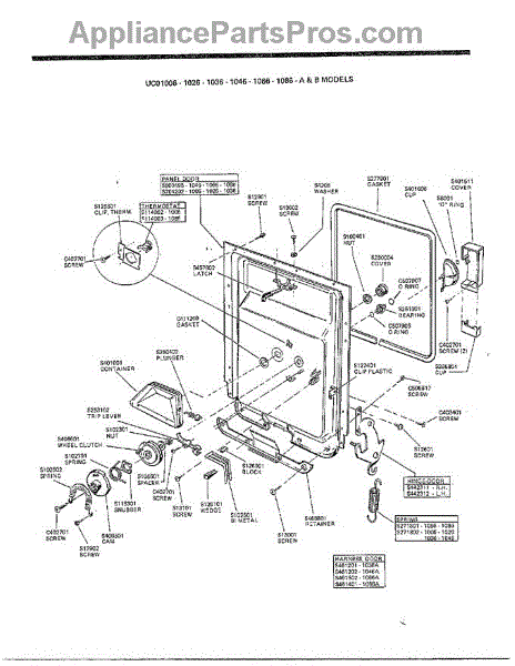 Parts for Frigidaire 1006: Dishwasher Door Assembly Parts