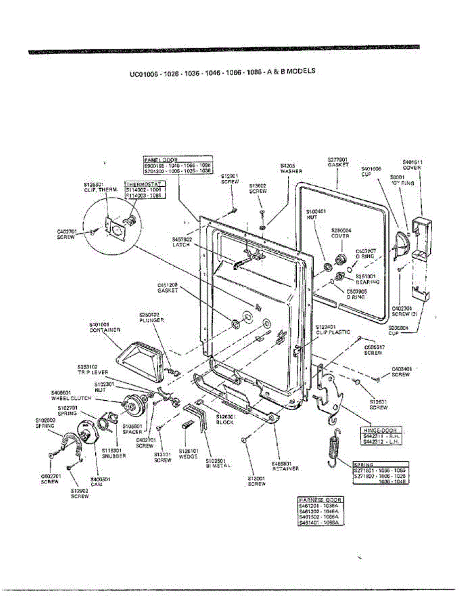Parts for Frigidaire 1066: Dishwasher Door Assembly Parts