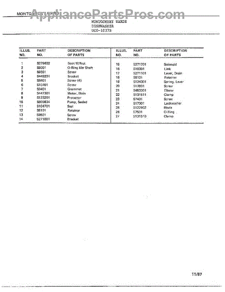 Parts for Frigidaire 1037B: Dishwasher Page 11 Parts