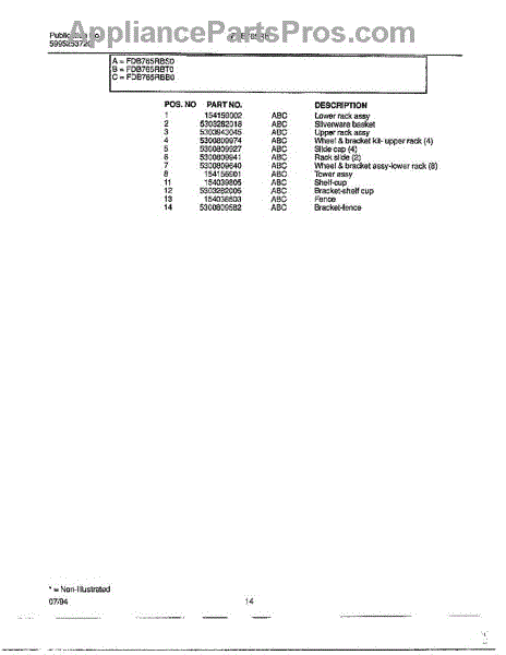 Parts for Frigidaire FDB765RB: Dishwasher Page 13 Parts