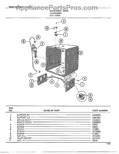 The Side Mount Kit is an OEM replacement part for Frigidaire dishwashers. It contains mounting brackets, screws, and other hardware required to securely install the dishwasher against cabinetry in a side-by-side configuration. Proper attachment is necessary for stability and safety during operation.