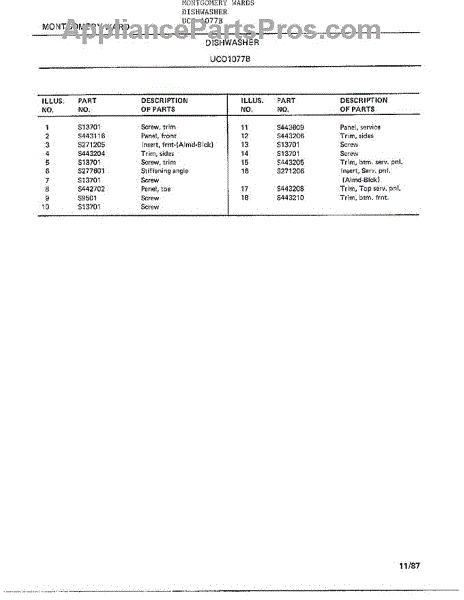 Parts for Frigidaire 1077B: Dishwasher Page 3 Parts