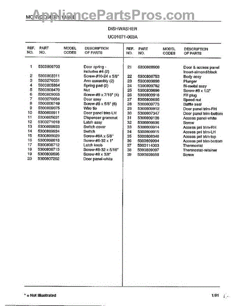Parts for Frigidaire 1071-003A: Dishwasher Page 4 Parts