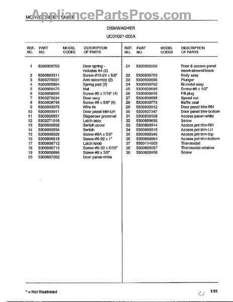Parts for Frigidaire 1081-000A: Dishwasher Page 4 Parts