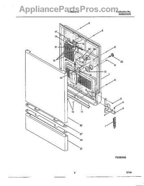 The Side Mount Kit is an OEM replacement part for Frigidaire dishwashers. It contains mounting brackets, screws, and other hardware required to securely install the dishwasher against cabinetry in a side-by-side configuration. Proper attachment is necessary for stability and safety during operation.