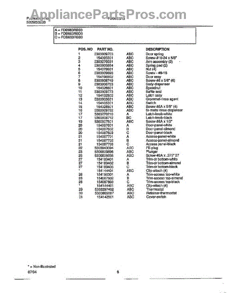 The Side Mount Kit is an OEM replacement part for Frigidaire dishwashers. It contains mounting brackets, screws, and other hardware required to securely install the dishwasher against cabinetry in a side-by-side configuration. Proper attachment is necessary for stability and safety during operation.