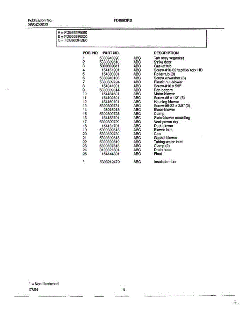 Parts for Frigidaire FDB663RB: Dishwasher Page 7 Parts