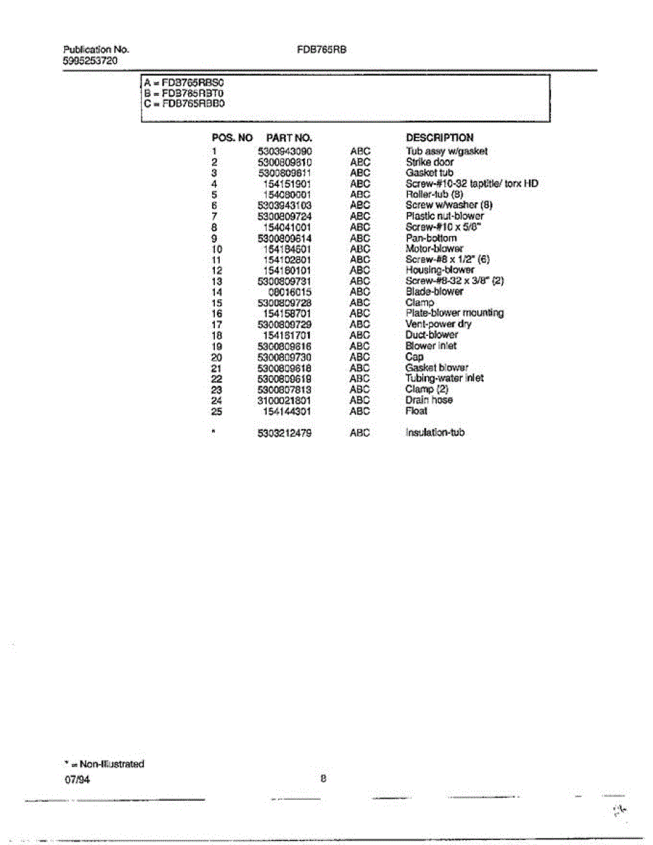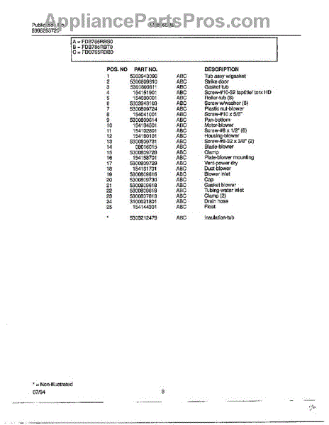 Parts for Frigidaire FDB765RB: Dishwasher Page 7 Parts