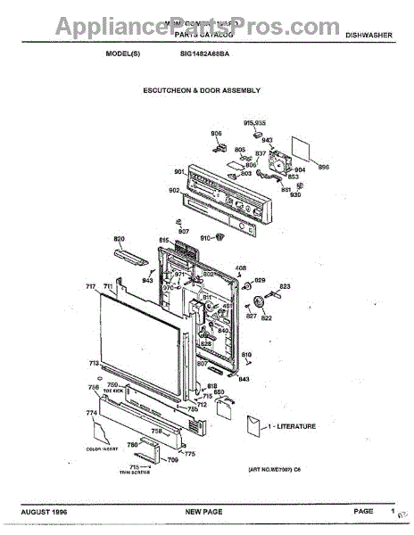 Parts for Ge SIG1482A68BA: Dishwasher Parts