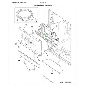 This dispenser wiring harness connects the dispenser controls and components in the refrigerator door, restoring electrical continuity for the dispenser functions and simplifying replacement of a damaged or faulty harness. What it does: