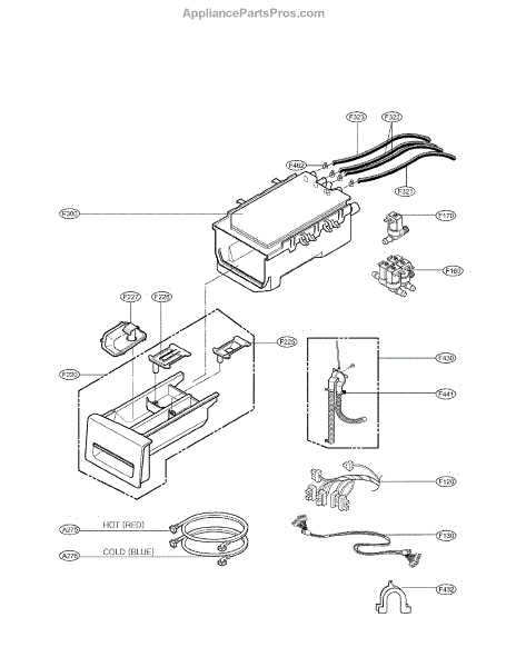 The Detergent Box Assembly is an OEM replacement part for LG washing machines. This assembly is responsible for holding and dispensing detergent and other laundry additives during the wash cycle. It ensures that the correct amounts of detergent, bleach, and fabric softener are released at the appropriate times, contributing to effective cleaning and care of your clothes.