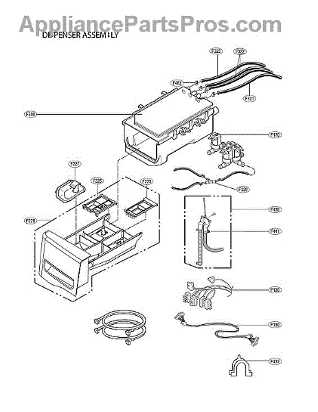 The Dispenser Hose is an OEM part for LG washing machines. It connects the detergent dispenser to the washer tub, allowing detergent and other cleaning agents to be delivered effectively during the wash cycle.