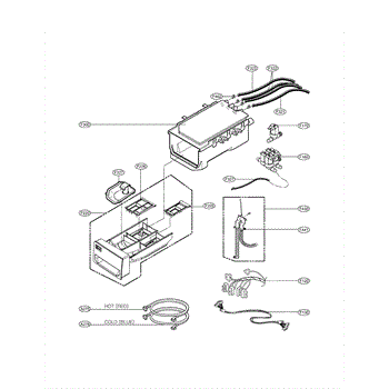 The Detergent Box Assembly is an OEM replacement part for LG washing machines. This assembly is responsible for holding and dispensing detergent and other laundry additives during the wash cycle. It ensures that the correct amounts of detergent, bleach, and fabric softener are released at the appropriate times, contributing to effective cleaning and care of your clothes.