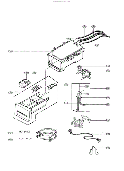 The Dispenser Assembly is an OEM part for LG front-loading washers. It is responsible for dispensing detergent and fabric softener at the appropriate times during the wash cycle. The dispenser assembly contains separate compartments for detergent and fabric softener, as well as timed mechanisms that release each additive when needed for cleaning and softening results.