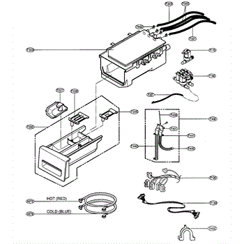 The Detergent Box Assembly is an OEM replacement part for LG washing machines. This assembly is responsible for holding and dispensing detergent and other laundry additives during the wash cycle. It ensures that the correct amounts of detergent, bleach, and fabric softener are released at the appropriate times, contributing to effective cleaning and care of your clothes.