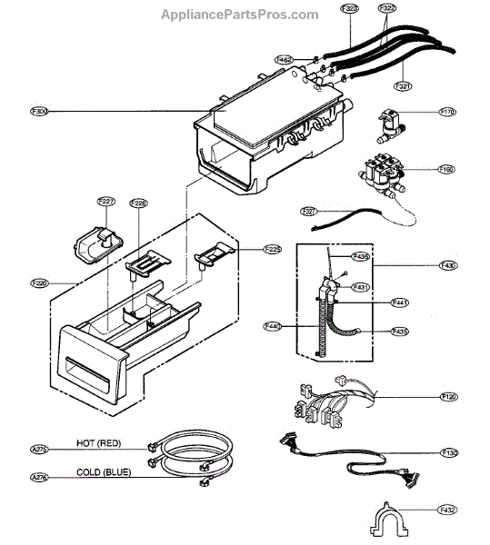 The Dispenser Assembly is an OEM part for LG front-loading washers. It is responsible for dispensing detergent and fabric softener at the appropriate times during the wash cycle. The dispenser assembly contains separate compartments for detergent and fabric softener, as well as timed mechanisms that release each additive when needed for cleaning and softening results.