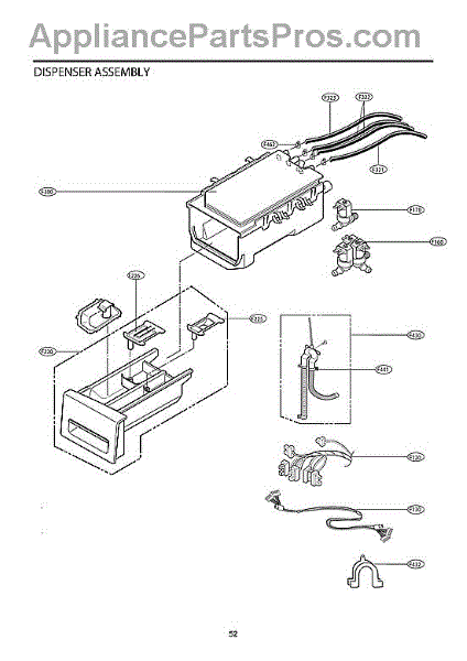 The Dispenser Assembly is an OEM part for LG washing machines. It is responsible for housing and dispensing the detergent, fabric softener, or other laundry additives at the appropriate times during the wash cycles.
