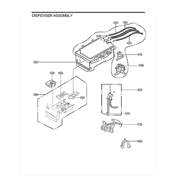 The Dispenser Inlet Hose is an OEM part for LG washing machines. This hose directs water from the water inlet valve to the detergent dispenser, ensuring that water mixes with the detergent before entering the drum for efficient washing. The hose is designed to withstand high water pressure and temperature fluctuations.