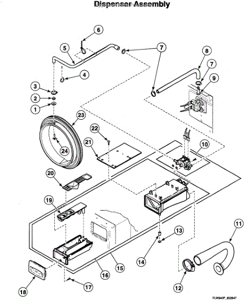 This inlet hose connects the washer's water inlet valve to the tub, routing incoming water to the wash chamber so the machine fills properly. It's a direct-replacement service part for restoring proper water flow. What it does: