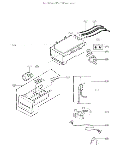 The Dispenser Assembly is an OEM part for LG front-loading washers. It is responsible for dispensing detergent and fabric softener at the appropriate times during the wash cycle. The dispenser assembly contains separate compartments for detergent and fabric softener, as well as timed mechanisms that release each additive when needed for cleaning and softening results.