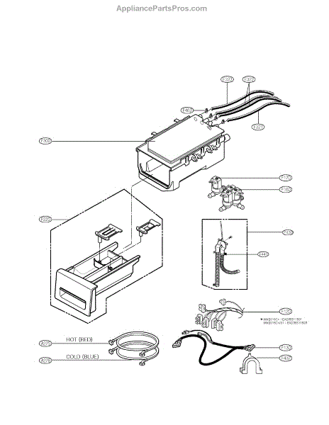 The Dispenser Assembly is an OEM part for LG front-loading washers. It is responsible for dispensing detergent and fabric softener at the appropriate times during the wash cycle. The dispenser assembly contains separate compartments for detergent and fabric softener, as well as timed mechanisms that release each additive when needed for cleaning and softening results.