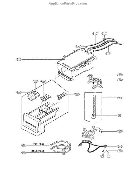 The Dispenser Assembly is an OEM part for LG front-loading washers. It is responsible for dispensing detergent and fabric softener at the appropriate times during the wash cycle. The dispenser assembly contains separate compartments for detergent and fabric softener, as well as timed mechanisms that release each additive when needed for cleaning and softening results.