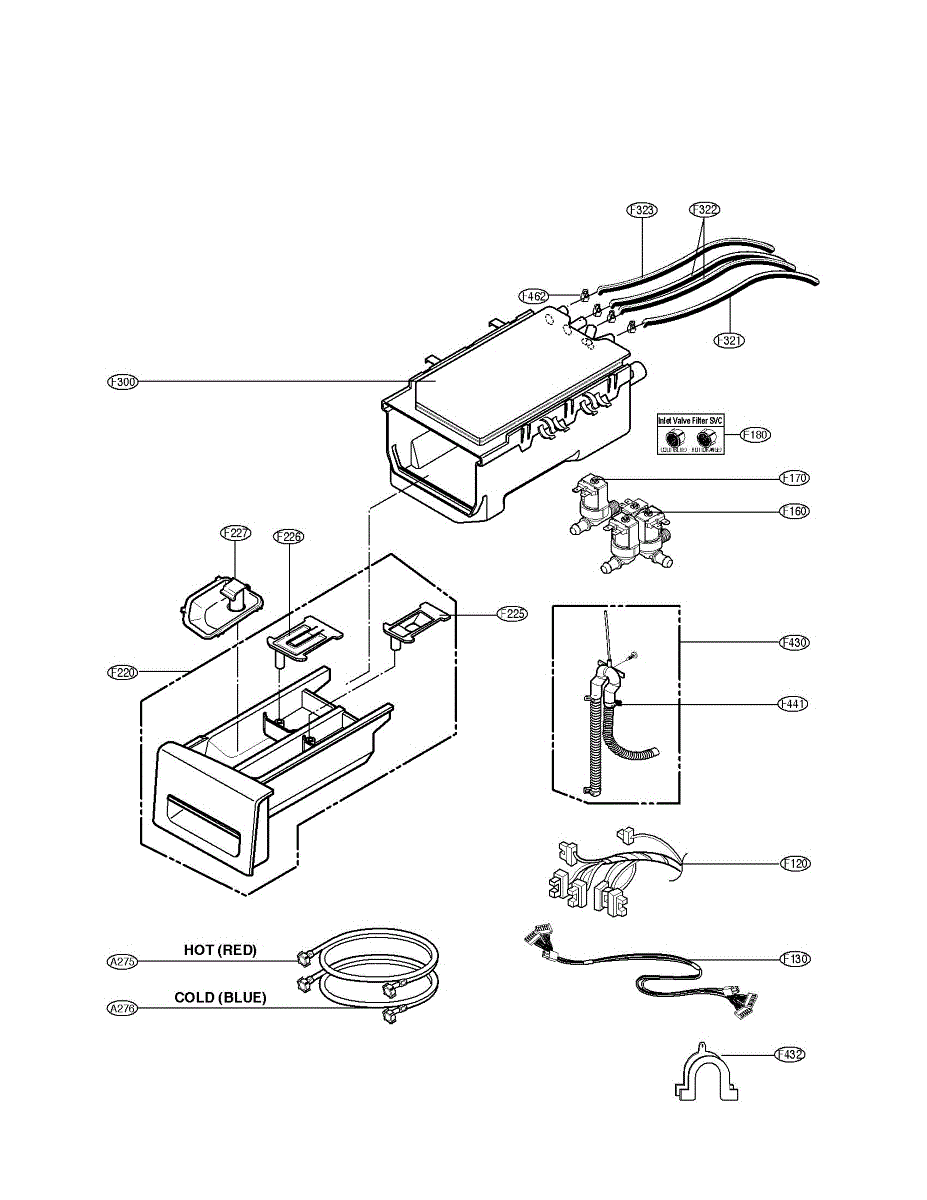 The Detergent Box Assembly is an OEM replacement part for LG washing machines. This assembly is responsible for holding and dispensing detergent and other laundry additives during the wash cycle. It ensures that the correct amounts of detergent, bleach, and fabric softener are released at the appropriate times, contributing to effective cleaning and care of your clothes.