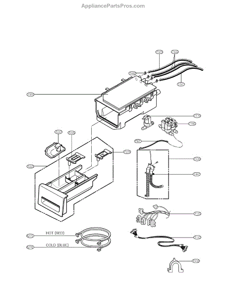 The Detergent Box Assembly is an OEM replacement part for LG washing machines. This assembly is responsible for holding and dispensing detergent and other laundry additives during the wash cycle. It ensures that the correct amounts of detergent, bleach, and fabric softener are released at the appropriate times, contributing to effective cleaning and care of your clothes.