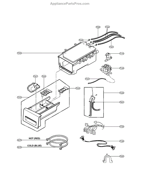 The Dispenser Assembly is an OEM part for LG front-loading washers. It is responsible for dispensing detergent and fabric softener at the appropriate times during the wash cycle. The dispenser assembly contains separate compartments for detergent and fabric softener, as well as timed mechanisms that release each additive when needed for cleaning and softening results.