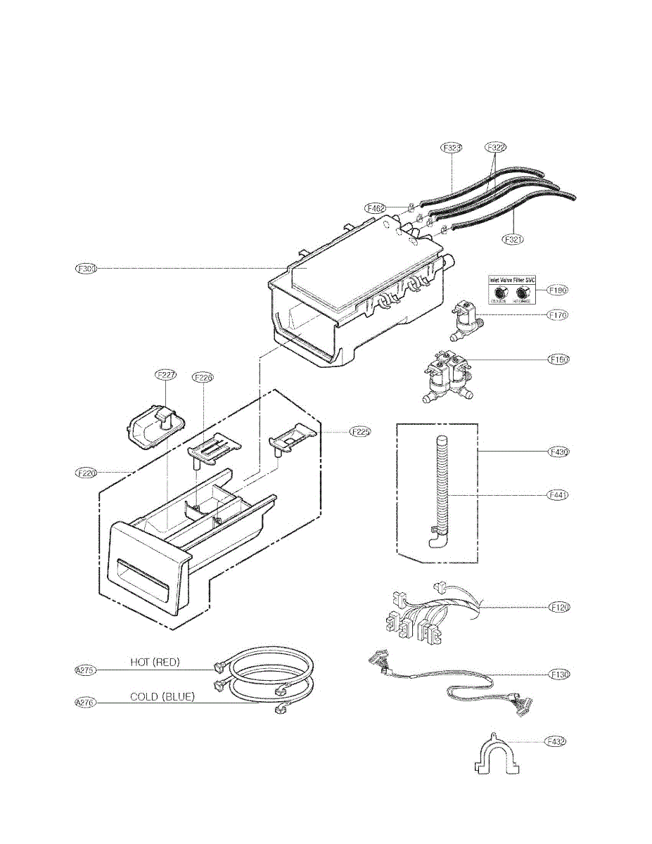 Directs water from inlet valve to detergent dispenser in LG washers. Replace if hose is cracked, leaking, won't stay attached, or damaged from wear.