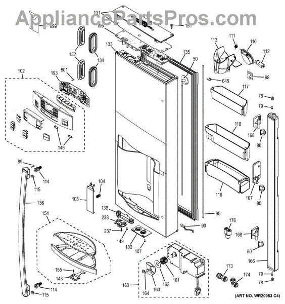 The Refrigerator door board profile is an OEM replacement part for GE refrigerator doors. It is the electronics responsible for operating door functions like illumination, alarm systems, temperature displays, and sealed system sensors. Causes of a bad control board can include moisture penetration corroding circuits over time, cracks or breaks from impact, or malfunctions in electronic components. Symptoms of a bad control board include: