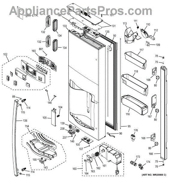 The Refrigerator door board profile is an OEM replacement part for GE refrigerator doors. It is the electronics responsible for operating door functions like illumination, alarm systems, temperature displays, and sealed system sensors. Causes of a bad control board can include moisture penetration corroding circuits over time, cracks or breaks from impact, or malfunctions in electronic components. Symptoms of a bad control board include:
