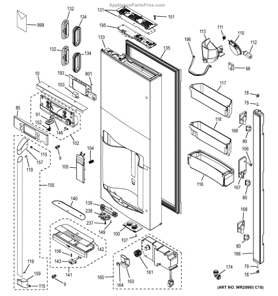 The Door Board is an OEM component designed for GE bottom-mount refrigerators. Located inside refrigerator doors, it operates essential LED functions for interior lighting and temperature displays. Properly illuminated shelves and accurate temperature readings depend on a functioning door board.