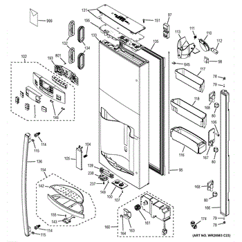 The Refrigerator door board profile is an OEM replacement part for GE refrigerator doors. It is the electronics responsible for operating door functions like illumination, alarm systems, temperature displays, and sealed system sensors. Causes of a bad control board can include moisture penetration corroding circuits over time, cracks or breaks from impact, or malfunctions in electronic components. Symptoms of a bad control board include: