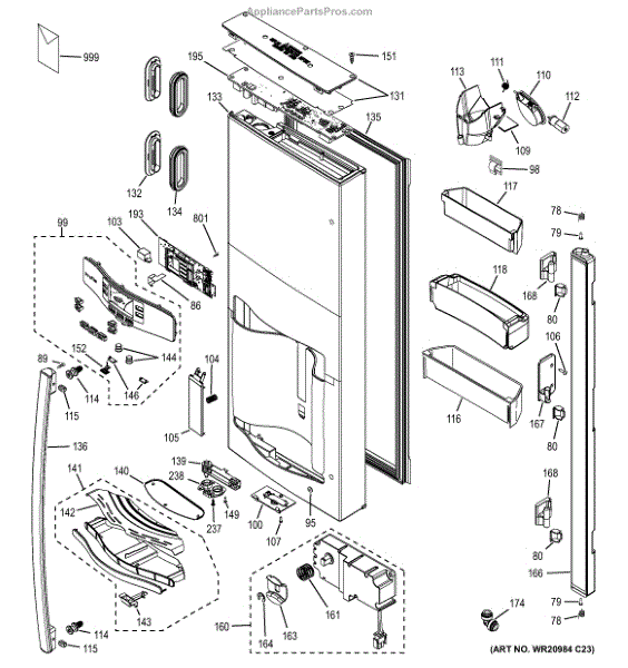 The Refrigerator door board profile is an OEM replacement part for GE refrigerator doors. It is the electronics responsible for operating door functions like illumination, alarm systems, temperature displays, and sealed system sensors. Causes of a bad control board can include moisture penetration corroding circuits over time, cracks or breaks from impact, or malfunctions in electronic components. Symptoms of a bad control board include: