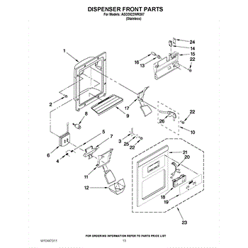 The Dispenser Overflow Grille is an OEM part for Whirlpool refrigerators. It fits in the dispenser area and catches any spills or overflow from the water and ice dispenser, preventing them from dripping onto the floor or into the appliance.