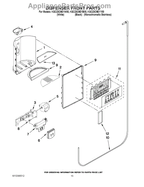 Parts for Kitchenaid KSC23C9EYW00: 08 - Dispenser Front Parts