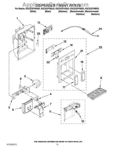 Parts for Kitchenaid KSCS23FVMS03: 08 - Dispenser Front Parts