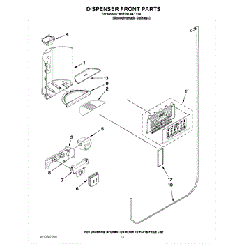 Parts for Kitchenaid KSF26C6XYY04: 09 - Dispenser Front Parts