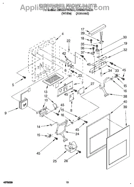 The Ice Dispenser Chute Door is an OEM part for Whirlpool refrigerators. This component is located in the ice dispenser mechanism on the freezer door and is responsible for opening and closing the ice chute. The chute door helps to dispense ice properly and prevents warm air from entering the freezer compartment, which can lead to frost buildup and inefficient cooling.