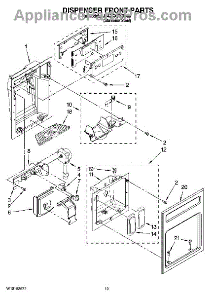 The Ice Dispenser Chute Door is an OEM part for Whirlpool refrigerators. This component is located in the ice dispenser mechanism on the freezer door and is responsible for opening and closing the ice chute. The chute door helps to dispense ice properly and prevents warm air from entering the freezer compartment, which can lead to frost buildup and inefficient cooling.