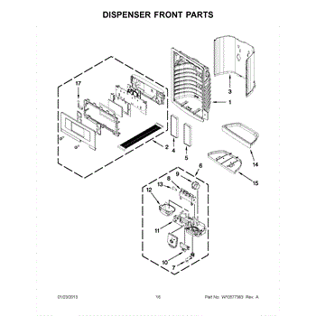 This dispenser separator assembly forms the interior of the refrigerator's ice/water dispensing area. It guides ice and water into your glass and helps seal the chute to limit warm air intrusion, drips, and frost at the opening.