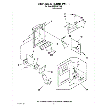 The Dispenser Overflow Grille is an OEM part for Whirlpool refrigerators. It fits in the dispenser area and catches any spills or overflow from the water and ice dispenser, preventing them from dripping onto the floor or into the appliance.