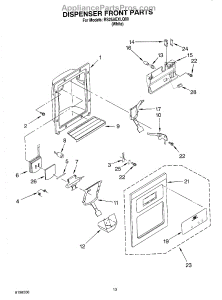 The Ice Dispenser Guide is an OEM replacement part for Whirlpool brand refrigerators. These brands also include Maytag, KitchenAid, Norge, Roper, Estate, and Kenmore models. It directs ice from the ice bucket to the dispenser chute. It helps to prevent jams by guiding the ice through the dispenser system smoothly and evenly.