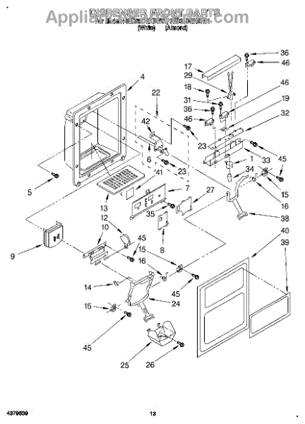 The Ice Dispenser Chute Door is an OEM part for Whirlpool refrigerators. This component is located in the ice dispenser mechanism on the freezer door and is responsible for opening and closing the ice chute. The chute door helps to dispense ice properly and prevents warm air from entering the freezer compartment, which can lead to frost buildup and inefficient cooling.
